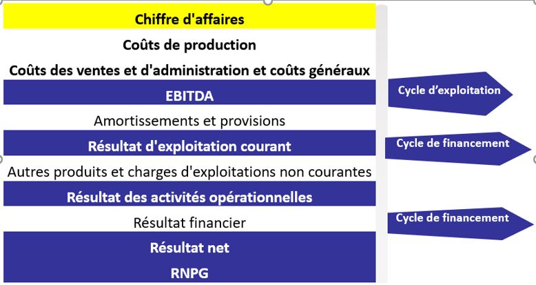 Le compte de résultat permet donner une lecture sur comment l’activité de l’entreprise a évoluée passant par ses trois cycles : d’exploitation, d’investissement et de financement, et infine si l’entreprise à pu créer de la richesse dur un exercice donné et de quelle manière.