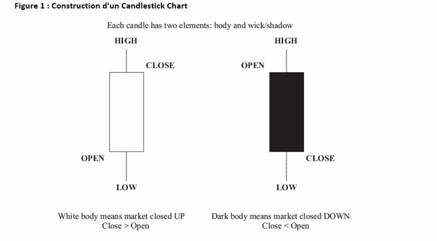 L’avantage du Candlestick Chart par rapport au bar chart est que les mouvements de prix sont beaucoup plus visibles dans le Candlestick Chart, ce qui permet une analyse plus rapide. Le Bar Chart indique la volatilité du marché uniquement par la hauteur de chaque barre, mais dans les Candlestick charts, la différence entre les prix d’ouverture et de clôture et leur relation avec les hauts et les bas de la journée sont clairement visibles.